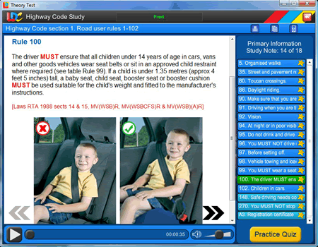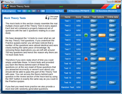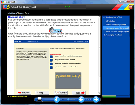 - Interactive tutorial that tells you all about the Theory Test with professional voice over.