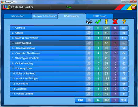 any difficult questions along with the DSA's own official answer explanation text. - Unique traffic light progress monitoring detailing which of the Official questions have been answered correctly, incorrectly or not at all. The only product to make