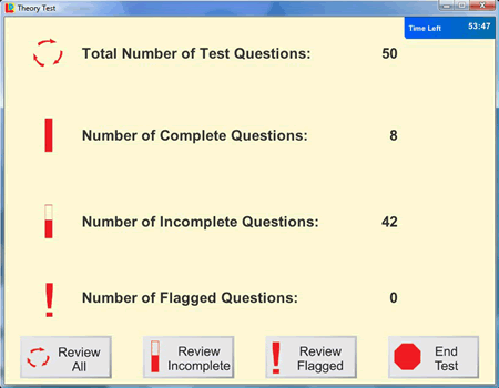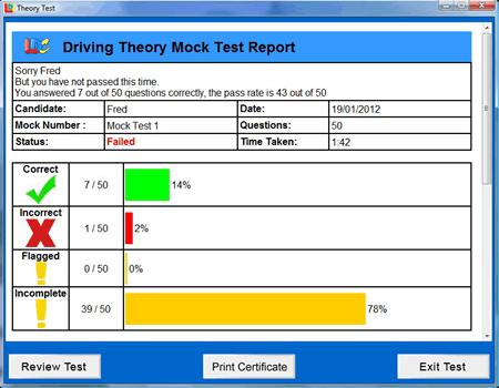 14 properly balanced pre-set simulated Theory Tests based on our extensive experience (as one of the largest national driving schools in the UK) of the most commonly occurring test questions all under realistic exam conditions.- Unlimited randomly generated Theory Test simulations (again properly balanced with the right number of questions from each category) just as on the real test.